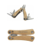 Strong and durable compact multi-tool made from high quality stainless steel with handles made of beech wood. This is a must-have tool for any scout, handyman, and outdoor enthusiast. Includes 12 functions: large nose pliers, standard pliers, wire cutter, serrated blade, bottle/can opener, flat screwdriver, medium flat screwdriver, small knife, Philips screwdriver, medium knife and file, and file cleaner. The beech wood used is from sustainable, environmentally, and socially responsible sources. The size when opened is 11 x 6 cm, and when closed 7.2 x 3.4 cm. Comes with an instruction manual and is packed in a recycled cardboard gift box with a size of 9.5 x 5.5 x 2.5 cm. Laser engraving is recommended as a sustainable decoration option.