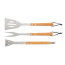 3 pcs stainless steel barbecue set with bamboo handles including spatula, carving fork and pair of tongs.