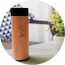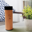 The double-walled vacuum-insulated stainless steel and bamboo bottle with a temperature sensor on top of the lid, which displays the drink's temperature inside the bottle (degrees Celsius).
