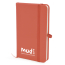 A6 PU soft finish 80 page lined notepad with elastic closure, book mark to keep the contents securely in place and pocket at back with pen loop.