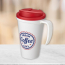 The mug features double-wall insulation, keeping your drinks hot or cold for longer periods by maintaining the temperature of your beverages. A secure twist-on lid helps prevent spills, sealing without the need for silicone, ensuring a mess-free experience.