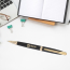 Style, elegance and a weighty feel in this prestigious twist action ball pen with a real gold plate finish. Can be supplied on its own or as a set with the matching roller pen.
