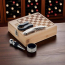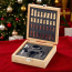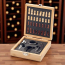 This beautifully crafted Chess Board Wine Set in a bamboo box includes a corkscrew, wine pourer, bottle stopper, and drip ring—everything needed for a refined wine experience.