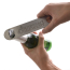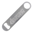 Flat silver metal bottle opener with rounded edges. Includes a large personalisation area.