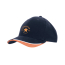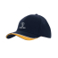 Structured 6-panel brushed cap with a low profile pre-curved peak and fabric strap & buckle. There is also a contrast peak indent & piping with matching Peak (under) material, matching four-stitch polo sweatband, and poplin-lined internal seams.
