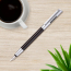 Crafted from a combination of metal and light carbon, this pen is not only stylish but also durable.