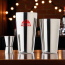 This elegant set includes a 750ml cocktail shaker, a 30ml measuring cup, a stirring spoon, and a sieve, all neatly packed in a reusable cotton pouch.