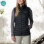 This synthetic down vest provides warmth, is water-repellent and can be integrated to a performing layering system.