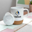 This ceramic mug with a durable plastic lid and cork bottom is more than just a beverage holder; it's a statement piece that combines style, practicality, and personalisation.