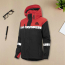 Taped seams and a protective flap over the front zipper (secured with press-studs) block out wind and rain. The removable hood adjusts with a front drawstring and rear wire system for a tailored fit.