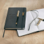 Complementing the pen is the A5 notebook, designed with both functionality and style in mind, composed of 80 sheets of 80 g/m² lined paper, providing a smooth writing experience. The Notebook has an elastic closure with a gold chromed metal accessory, ensuring your notes are kept secure, a ribbon marker to easily track your progress, an accordion pocket for additional storage, perfect for keeping loose notes or business cards.