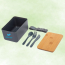 The included cutlery set comprises a fork, spoon, and knife. Both the lunchbox and all cutlery pieces are crafted from BPA-free plastic.