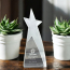 Constructed from high-quality optical crystal, the award boasts a clear, pristine appearance that captures and reflects light beautifully. The dynamic shooting star motif symbolises success and achievement, making it a fitting tribute for any occasion. Additionally, the unique sandblast effect adds texture and depth, enhancing its visual appeal and distinctiveness.