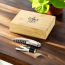 Welcome to the perfect gift for any wine lover! Our Merlou 2 Piece Wine Set is a special and sustainable way to commemorate any occasion. Inside the exquisite bamboo gift box you'll find an impressive waitress corkscrew and a stylish bottle pourer. This set makes opening and pouring wine easy, quick, and enjoyable. Whether it's used while hosting friends or while enjoying quality time alone, this set has been designed to accommodate all settings with grace. Plus, thanks to our commitment to sustainability, bamboo is the go-to material for the packaging of this set – doing right by everyone involved in the production process. Make it extra special by adding your company logo for a personal touch. Enjoy this elegant two-piece wine set today!