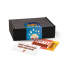 Everything you need for a movie night in, This black midi gift box comes filled with a 12 Baton Chocolate Bar, Candy Bag Retro Sweets, Fruit Gum Flow Bag and Joe & Seph's Popcorn Bites.