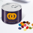 Our mini ring pull tin which is personalised with your artwork in full colour, filled with Jelly beans.