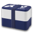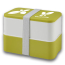 Go large with this MIYO double layer lunch box! With one or two 700 ml capacity bases, there’s plenty of room for sandwiches, fruit, salad and much more, and it’s all held in place with a band made from recycled PET. Other colour combinations plus accessories are available, such as a spork or inner compartment, please contact us for details. Microwave safe, dishwasher safe, BPA-free and fully recyclable. Made in the UK and packed in a home compostable bag. PP Plastic.