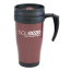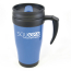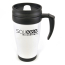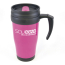 A 400ml capacity plastic doubled walled promotional travel mug. Comes complete with handle, screw on lid and matching coloured sip cover.