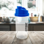 350ml Protein shaker in a frosted plastic with two separate compartments showingml/oz. The lid has separate drinking straws.
