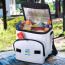Foldable cooler bag with zipped main compartment and zipped front pocket. Adjustable shoulder strap. The cooler bag can be folded flat due to the hook & loop on the front pocket. Accessories not included—600D of Polyester.