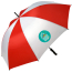 Low cost 76cm, 8 rib golf umbrella. Metal frame, fibre glass solid ribs, polyester panels. Black plastic pistol grip handle.