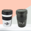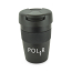 350ml double walled black stainless steel take out tumbler with black silicone grip band and secure sipper. BPA & PVC free. Available in black