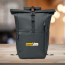 This 15-inch roll-top laptop backpack is made from 300D RPET polyester, making it durable and long-lasting. Its large front pocket offers ample space for all your essentials, while a hidden side pocket with a small carabineer loop completes its sleek design.