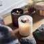 This elegantly designed candle is housed in a sleek glass jar, accentuated with decorative stones, and features a unique wooden wick for a crackling, warm ambience.