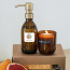 The use of biodegradable hand soap in a glass bottle and a reusable glass candle jar promotes sustainability and reduces waste. The bamboo scent of the candle is refreshing and calming, making it perfect for a relaxing evening at home or for creating a spa-like atmosphere in your bathroom.